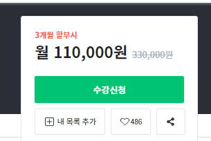 강의 후기와 별개로, 할 말은 해야 한다. 11만원이 아니다. 자세히 살펴봐야 한다. 이런 스타일의 온라인 강의나 상품의 가격 홍보 마케팅은 극혐 하는데 정확히는 월 !! 11만원이며 3개월 할부 조건이다. 제일 중요한 총 금액 330,000원에 가격을 흐릿한 회색에 작은 글씨로 표시하고 과감하게 취소선까지 그었다. 중요한 정보를 야바위 게임하듯 표시하는 것은 꼭 인프런 뿐 아니라 대부분의 온라인 사이트에서 시행하는데 진짜 못마땅하다. 극혐. 나중에 욕이라도 먹게 되면 강사는 무슨 죄야…
