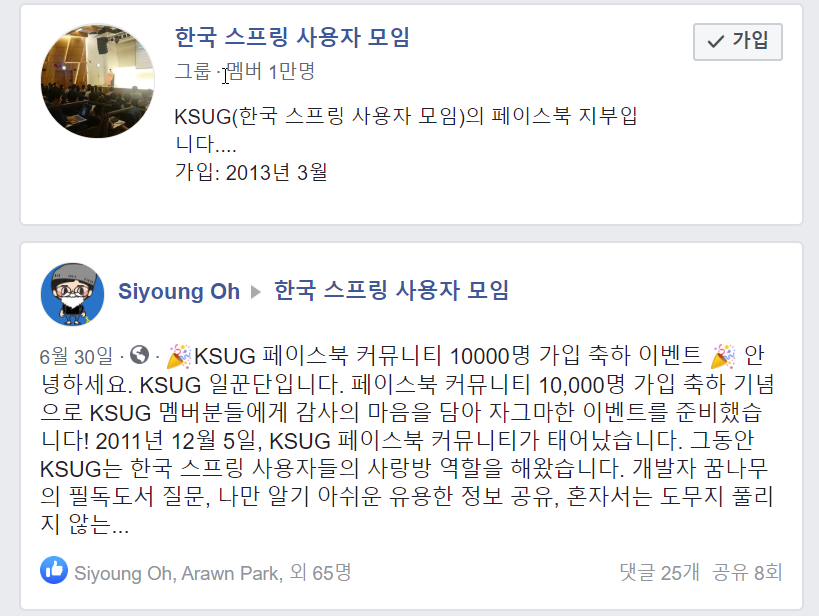 KSUG 페이스북 커뮤니티 10,000 명 가입축하 이벤트에 당첨되었다. 붙어라! 하는 이력서는 떨어지고 이벤트는 붙었다. 눈물겹다. 덕분에 백기선님의 스프링 웹 MVC 인프런 강의를 무료 쿠폰으로 수강할 수 있게 되었다.