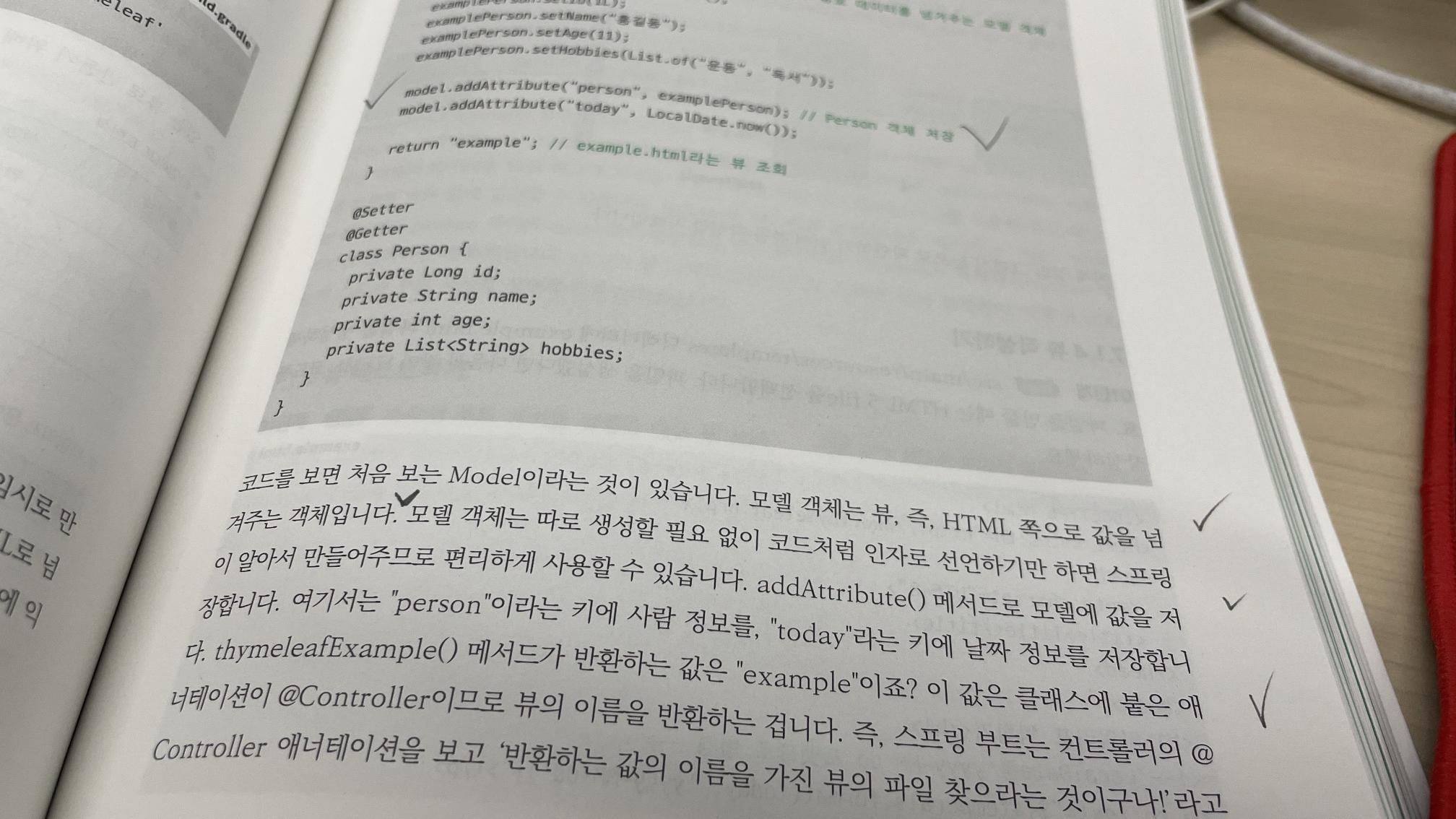 5장까지 이어지는 레벨 1 에서는 스프링 프레임워크와 데이터베이스를 설명하면서 스프링부트, 테스트, ORM (JPA)를 설명하며, 과거 기술을 굳이 꺼내 혼란을 일으키지 않으면서도 2023년 현재 시점에 교양처럼 필요한 기술들을 설명한다. 대부분 아는 내용이지만 정확히는 모르고 그저 빠르게 사용하고 개발하는 수준에서 머물렀던 나조차도 매 페이지마다 다시 봐야 할 부분이라고 체크하기 바쁜 책이다. 책을 보다보면 당장 이해가 안되거나 중요해서 혹시 이 책을 보게 될(?) 누군가가 한 번 더 보라는 의미로 체크표시를 하는데, 책이 손에 들어온지 몇 일 되지도 않았는데 너덜 너덜해졌다. 내 책이니 뭐라 할 사람 없겠지만 …